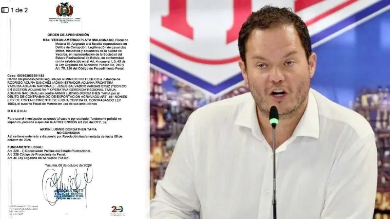 La orden de aprehensión contra Dorgathen fue emitida por el fiscal de Yacuiba, Yeison Plata, tras una denuncia que se fundamenta en una presunta operación de exportación de gas que se realizó sin contar con una resolución de autorización, lo cual habría incumplido los requisitos normativos.
