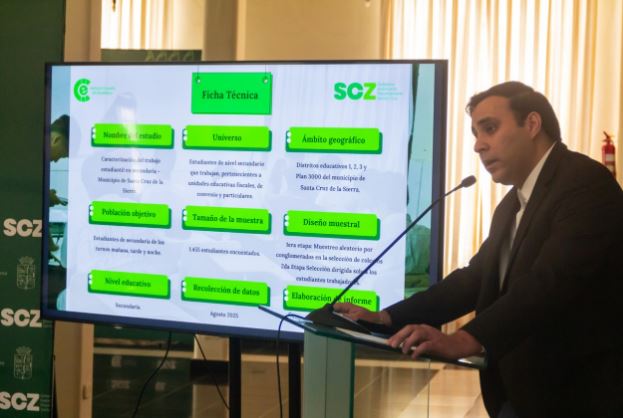 El Instituto Cruceño de Estadística (ICE), dependiente de la Gobernación cruceña, presentó el estudio “Caracterización del trabajo infantil en estudiantes de secundaria de Santa Cruz de la Sierra”, realizado con la colaboración de estudiantes de carrera de Economía de la Uagrm y de colegios, como el particular evangélico Edén.