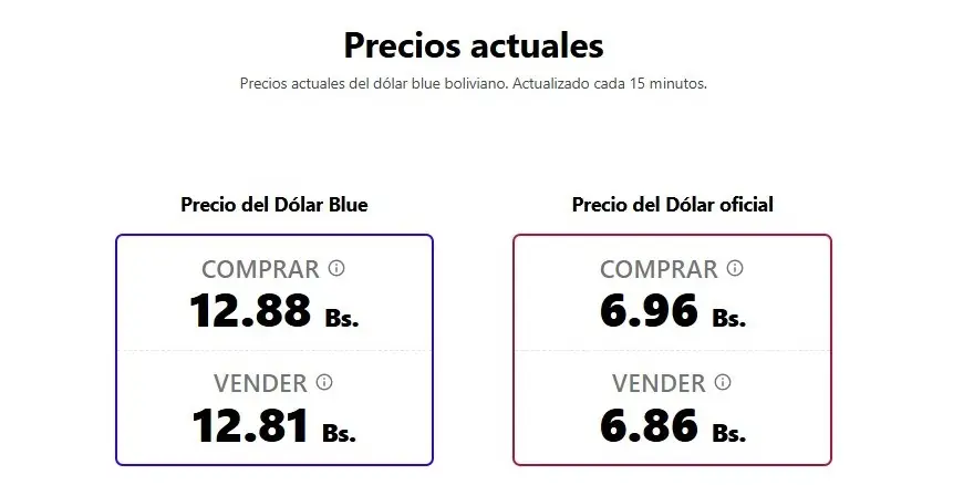 Por otro lado, según datos obtenidos por el sitio https://bolivianblue.net/#google_vignette, el dólar blue boliviano que se actualiza cada 15 minutos, cotiza este jueves una variación, ya que a la compra se registra en 12.88 (BOB), y 12.81 (BOB), para la venta.