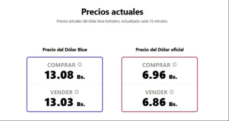 Por otro lado, según datos obtenidos por el sitio https://bolivianblue.net/#google_vignette, el dólar blue boliviano que se actualiza cada 15 minutos, cotiza este lunes una variación, ya que a la compra se registra en 13.08 (BOB), y 13.03 (BOB), para la venta.