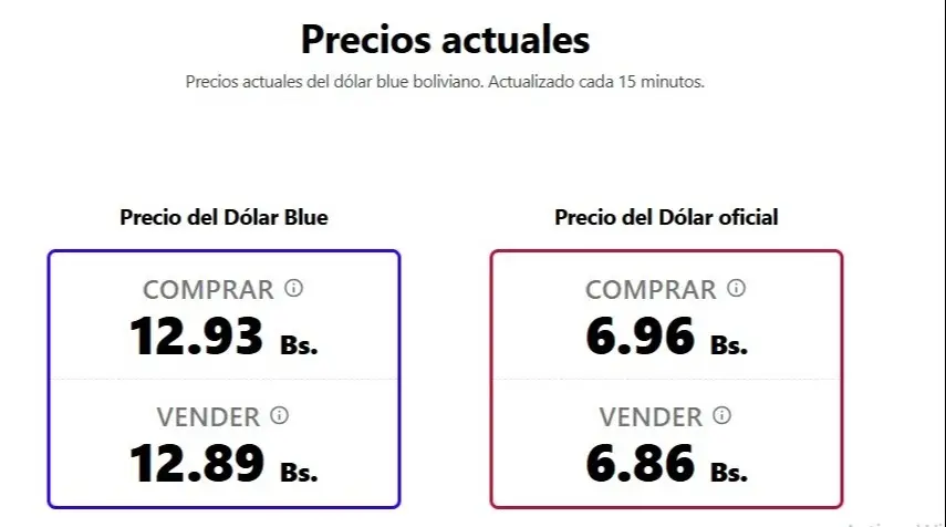 Por otro lado, según datos obtenidos por el sitio https://bolivianblue.net/#google_vignette, el dólar blue boliviano que se actualiza cada 15 minutos, cotiza este miércoles una variación, ya que a la compra se registra en 12.93 (BOB), y 12.89 (BOB), para la venta.