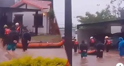 Uno de los casos más dramáticos ocurrió dentro de un condominio, donde una mujer y su bebé de pocos meses tuvieron que ser evacuadas en un bote inflable debido al alto nivel del agua.