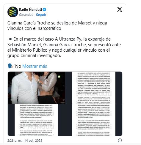 En la declaración, la primera desde que García Troche llegó extraditada a Paraguay el pasado 21 de mayo, proveniente de España, donde fue detenida en el aeropuerto Adolfo Suárez-Madrid Barajas en julio de 2024, dijo que no ha formado parte de «ninguna organización criminal».