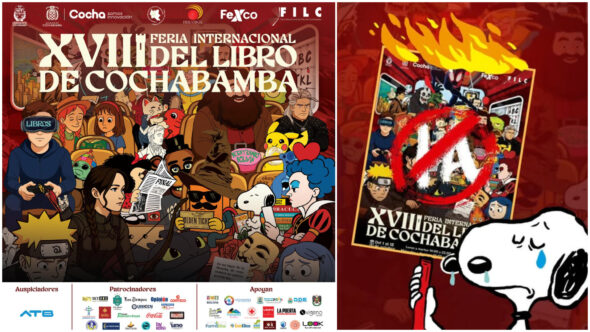 El cartel del escándalo. La Comunidad de Ilustradores de Bolivia publicó una carta abierta dirigida a los organizadores de la Feria Internacional del Libro de Cochabamba en la que denuncia el uso de inteligencia artificial y califican como «plagio desmesurado» en la elaboración del cartel oficial del evento cultural. El documento, firmado por los artistas gráficos del país, expresa su «profunda preocupación e indignación» por lo que consideran una vulneración a la ética profesional y al respeto por la literatura boliviana.