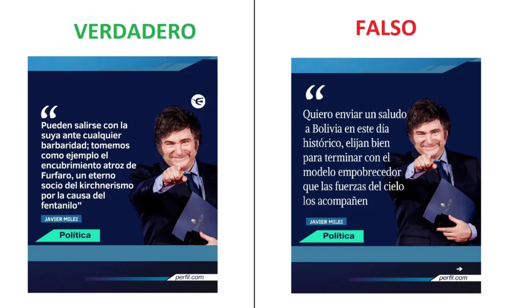 El equipo de Bolivia Verifica revisó las cuentas oficiales (1, 2, 3) del medio argentino Perfil y no encontró ninguna publicación con esa información. Por el contrario, se identificaron imágenes similares, pero con otras declaraciones y una tipografía diferente.