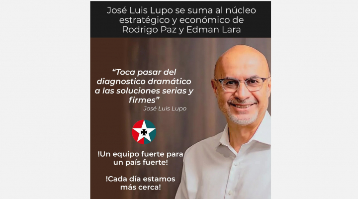 El excandidato a la vicepresidencia José Luis Lupo se incorporó al “núcleo estratégico y económico” de la campaña presidencial de Rodrigo Paz y Edmand Lara, reforzando el equipo técnico de la candidatura de cara a las elecciones.