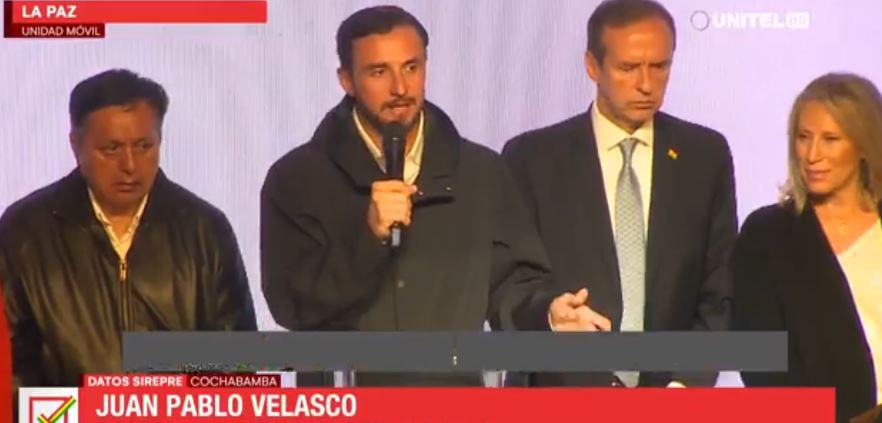 Velasco, compañero de fórmula de Jorge Tuto Quiroga, brindó un discurso cargado de emotividad, en el que reconoció la derrota electoral, agradeció a su líder político y resaltó su compromiso con la democracia y con el futuro del país.