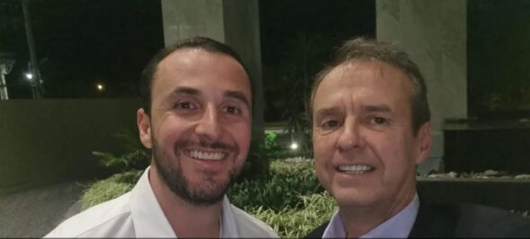 El candidato de la alianza Libre, Juan Pablo Velasco, llegó cerca de las 20:00 de este domingo al predio de Fexpocruz, lugar en el que desde las 21:00 se desarrollará el debate vicepresidencial donde estará frente a frente con Edman Lara, del Partido Demócrata Cristiano (PDC).