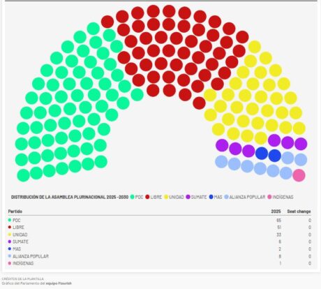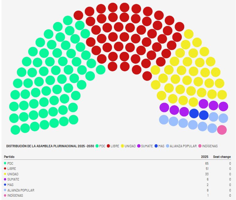 En la ALP el Partido Demócrata Cristiano (PDC) emerge como la bancada más numerosa con 65 representantes, pero está muy lejos de los 84 necesarios para la mayoría simple en el pleno y más aún de los 113 para los dos tercios requeridos en decisiones cruciales.