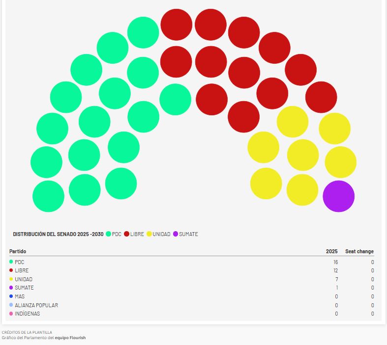 Mientras que en el Senado, la correlación es: PDC (16), Libre (12), Unidad (7) y Súmate (1).