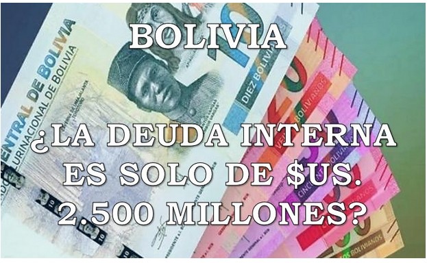 Ayer, el ministro de economía, indico que la deuda interna del país es el 19% del PIB, y que, con la deuda externa, llegan a un 42% del mismo. Respetando sus cálculos y proyecciones, esto significa que la deuda interna a la fecha es de $us. 11.302,7 millones, una cifra subestimada, pero aun así mucho mayor que la indicó anoche ese funcionario gubernamental. Estos $us. 2.500 millones representarían solo el 4% y no así el 19% del PIB indicado por el ministro, el cual sería de $us. 59.487,88 millones, de acuerdo a datos oficiales a agosto 2025 (BCB).