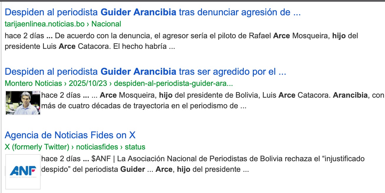 Por ello, mi solidaridad con Guider Arancibia y la oferta para que enseñe todo lo que sabe sobre periodismo de investigación en las aulas de la carrera Ciencias de la Comunicación de la Universidad Autónoma Gabriel René Moreno, como me lo han sugerido varios alumnos
