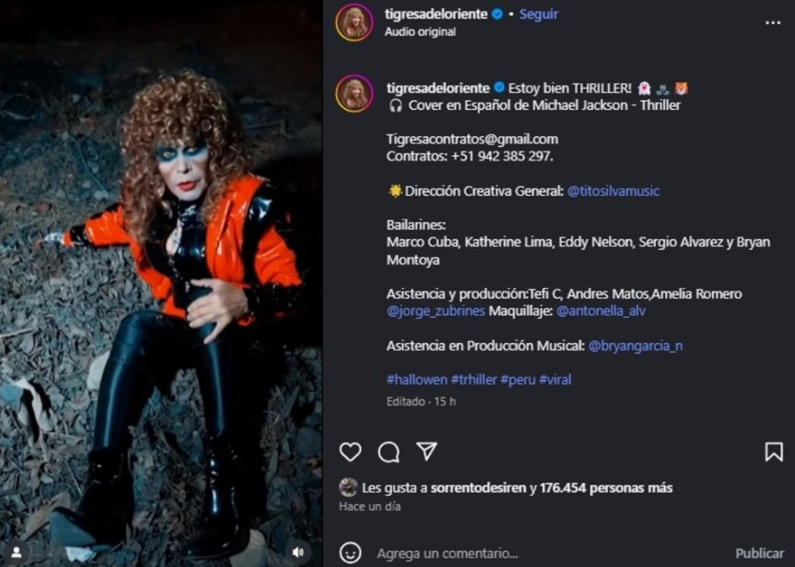 El lanzamiento no es casual, pues la peruana eligió estrenar su versión justo en vísperas de Halloween, una fecha que rinde tributo a lo sobrenatural y que ella aprovechó para homenajear al “Rey del Pop” con su propio rugido musical.
