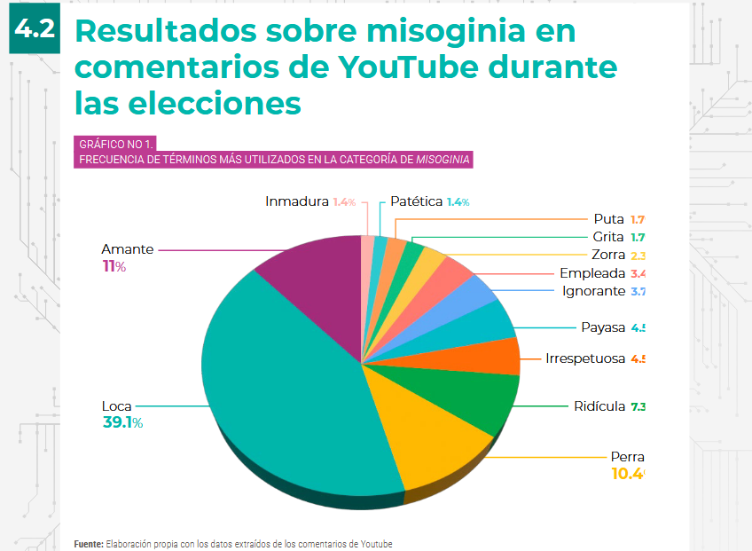 El estudio, basado en el monitoreo semiautomático de 385 comentarios en YouTube, revela que los discursos violentos en línea contra las mujeres políticas no solo reproducen estereotipos de género, sino que operan como mecanismos de silenciamiento. El 39,1% de los ataques empleó la palabra “loca”, un término que históricamente se ha usado para descalificar a las mujeres que desafían los roles tradicionales o se atreven a ejercer liderazgo.