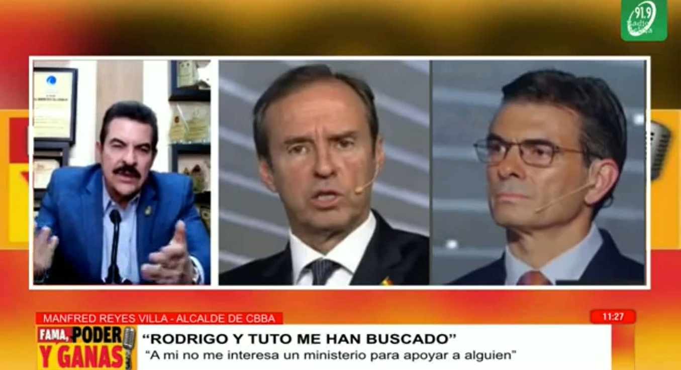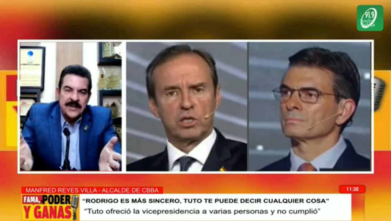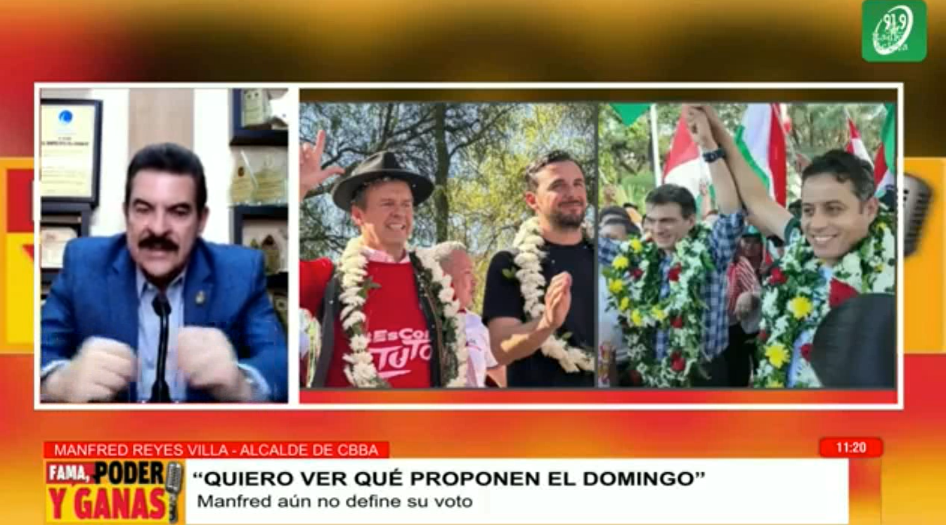 En plena recta final del balotaje, el exalcalde de Cochabamba, Manfred Reyes Villa, lanzó una evaluación con filo político: “Rodrigo es más sincero. Tuto te puede decir cualquier cosa”, afirmó, al comparar a los dos candidatos presidenciales que buscaron su apoyo – dijo – en las pasadas semanas de cara a la segunda vuelta que se llevará a cabo el próximo 19 de octubre.