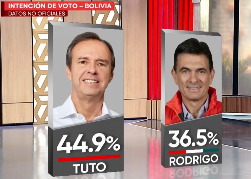 La desviación entre la predicción y la votación se repitió en la campaña del balotaje: sondeos difundidos por Red Uno el 11 de octubre mostraban a Tuto Quiroga con 42,9% frente a 38,7% de Paz, dos cifras invertidas por el resultado final del 19 de octubre, que dieron a Rodrigo Paz la presidencia con aproximadamente 54% frente al 45%, según el conteo del Sistema de Resultados Electorales Preliminares (Sirepre) del Tribunal Supremo Electoral (TSE).