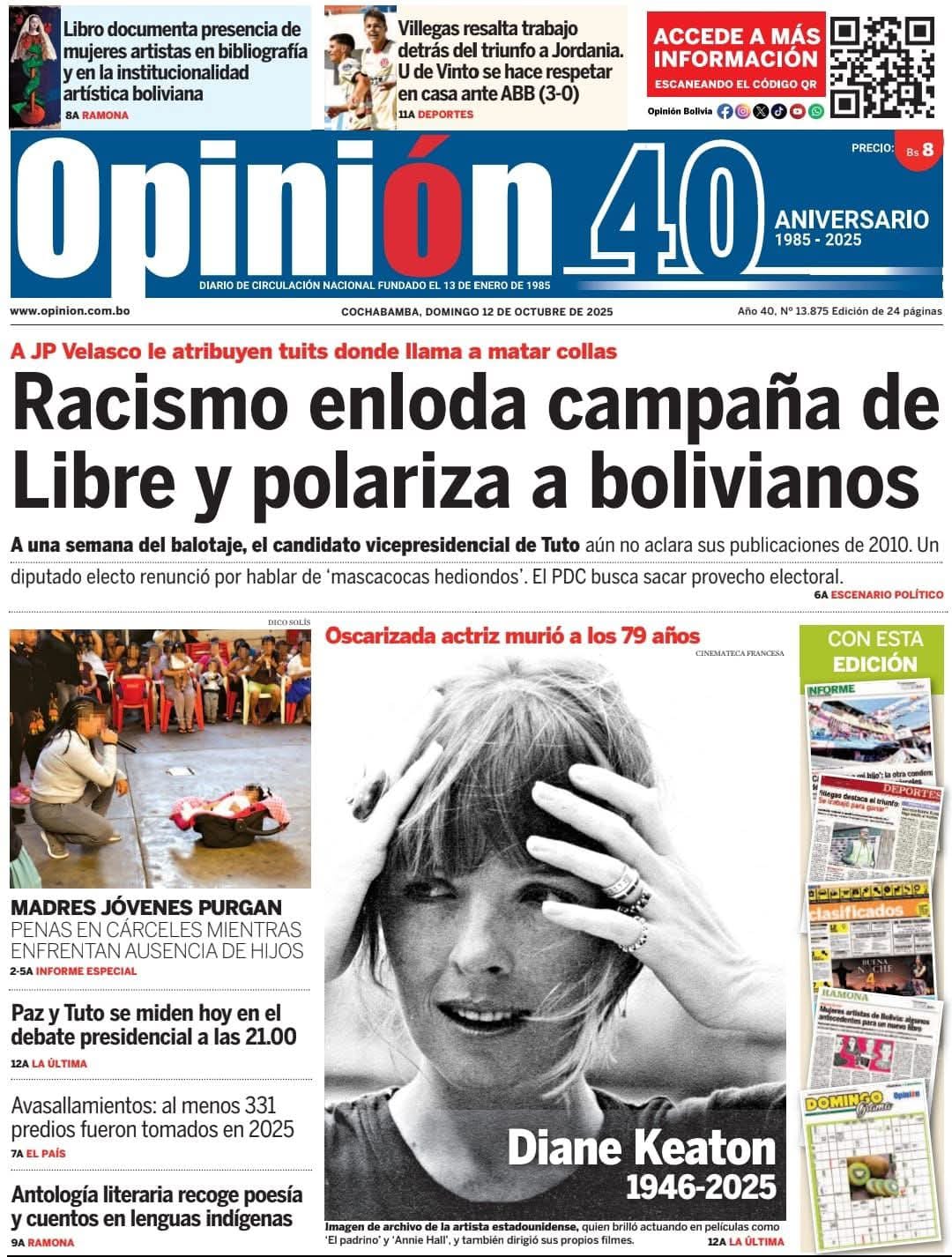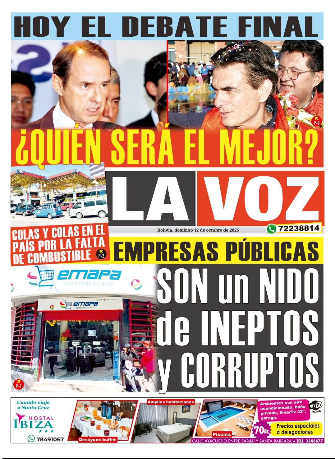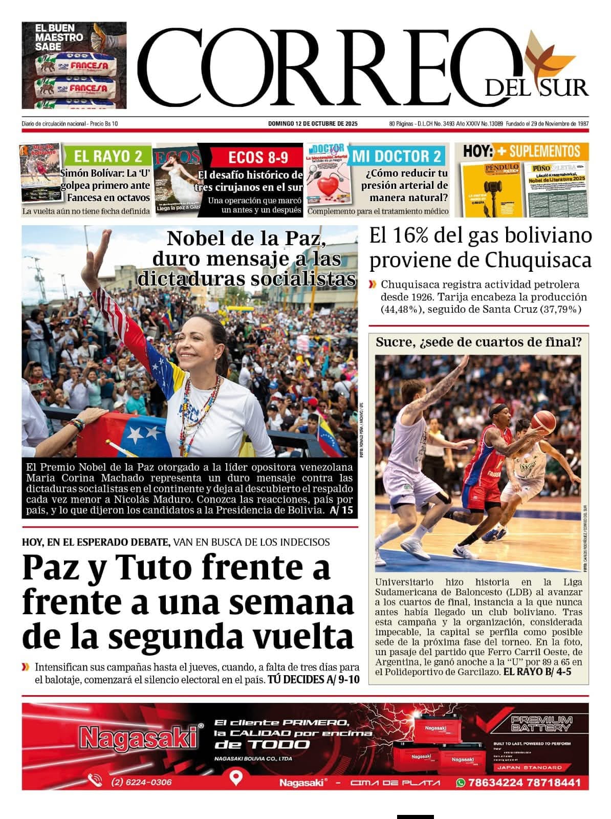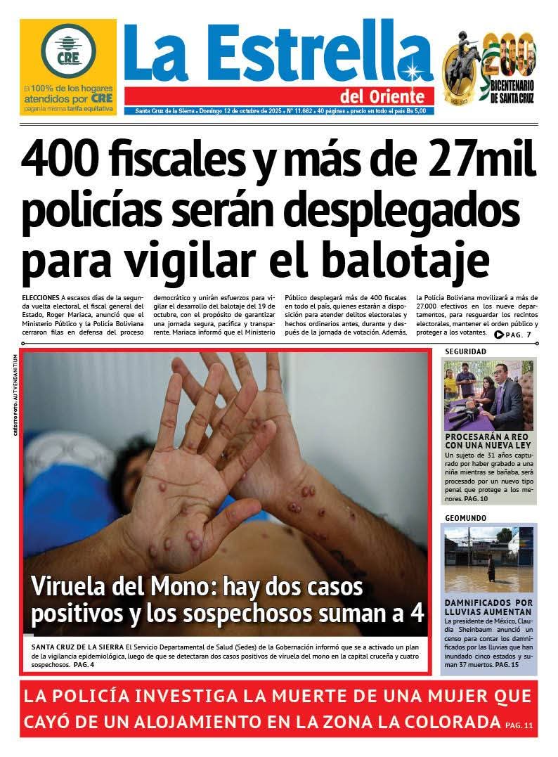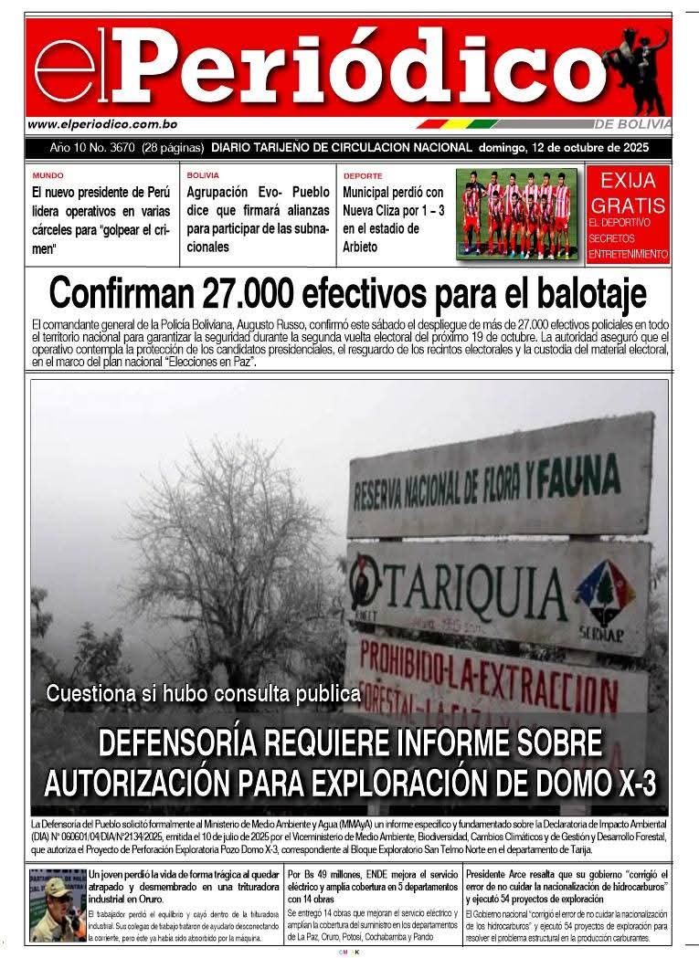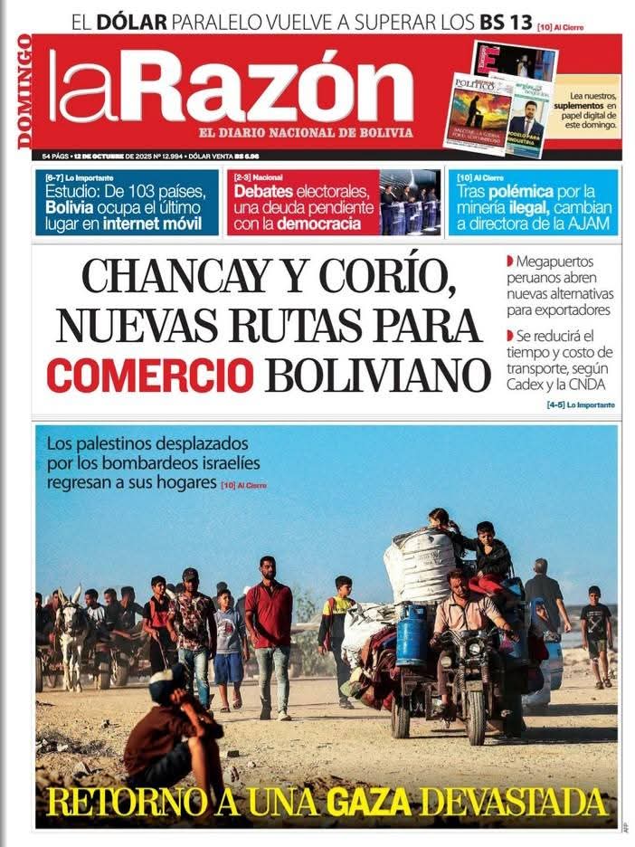 Portadas de los periódicos de Bolivia del domingo 12 de octubre del 2025Categorías MonitoreoEtiquetas 12/10/2025 Fuente: eju.tv eju.tv