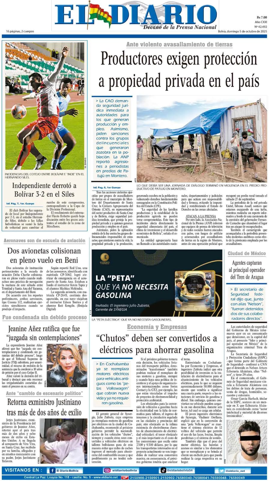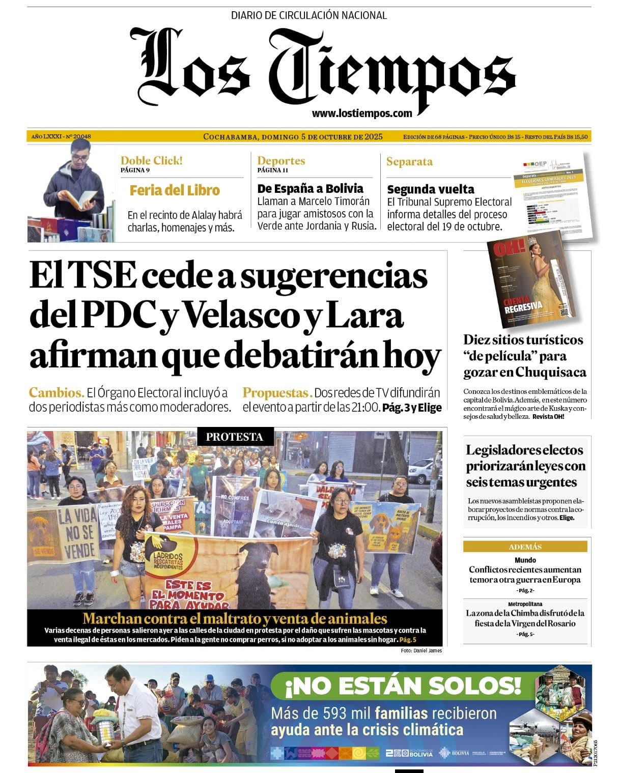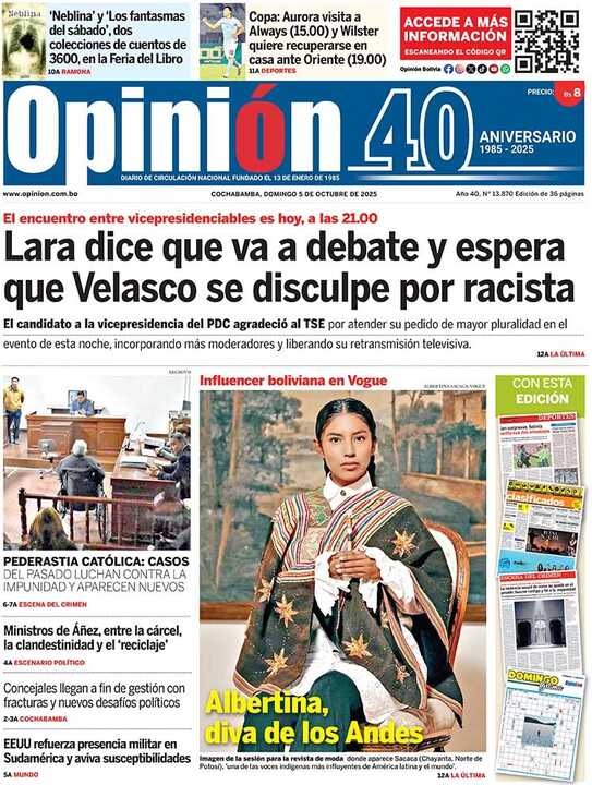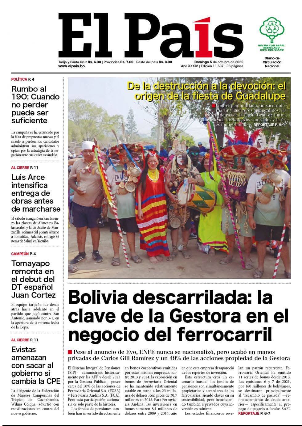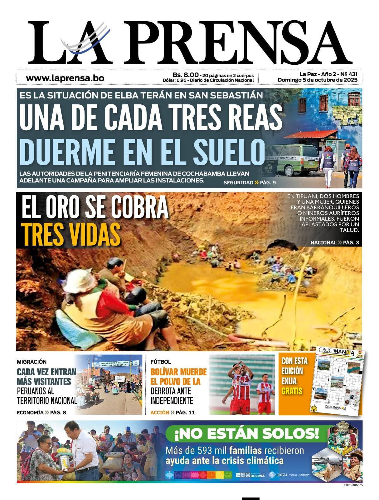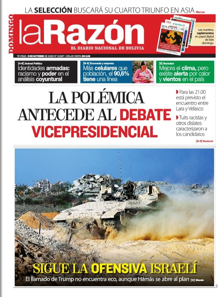 Portadas de los periódicos de Bolivia del domingo 5 de octubre del 2025