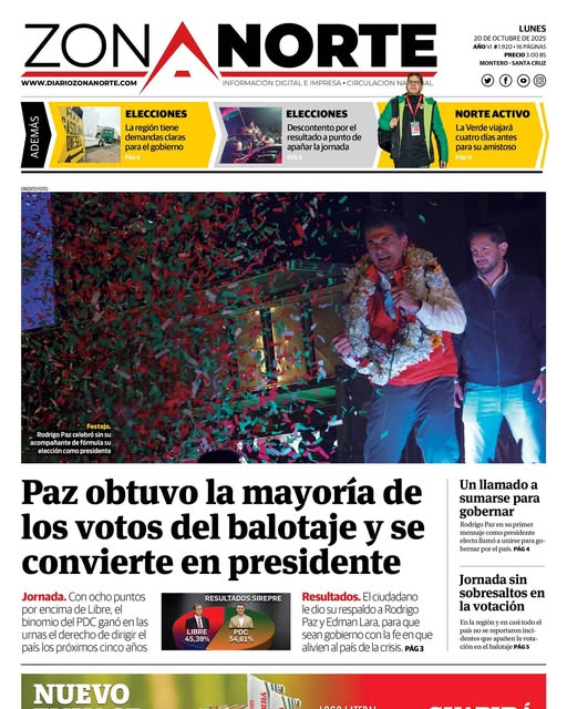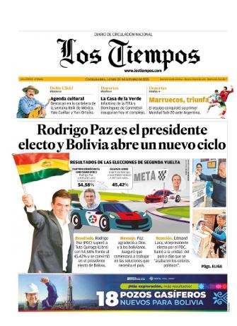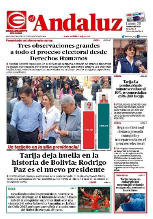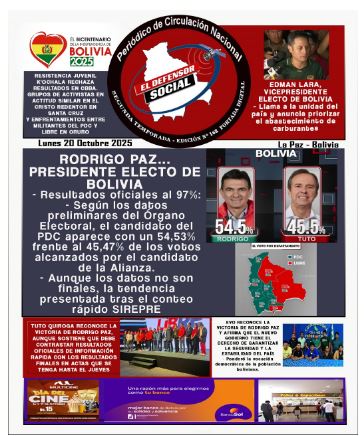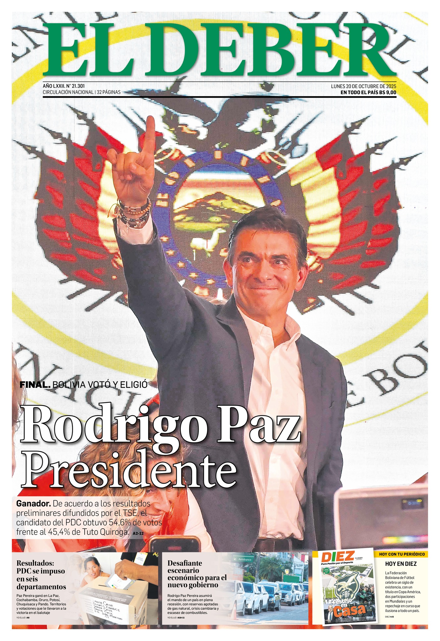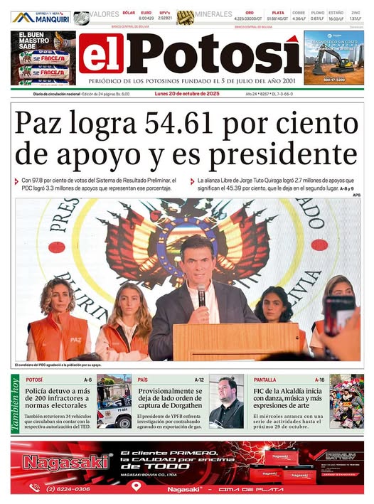 Portadas de los periódicos de Bolivia del lunes 20 de octubre del 2025