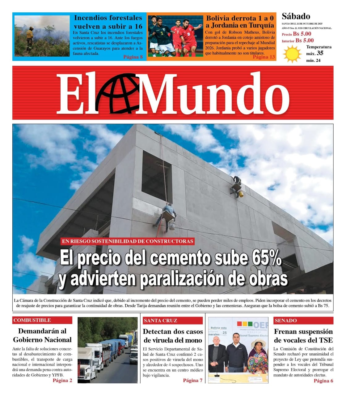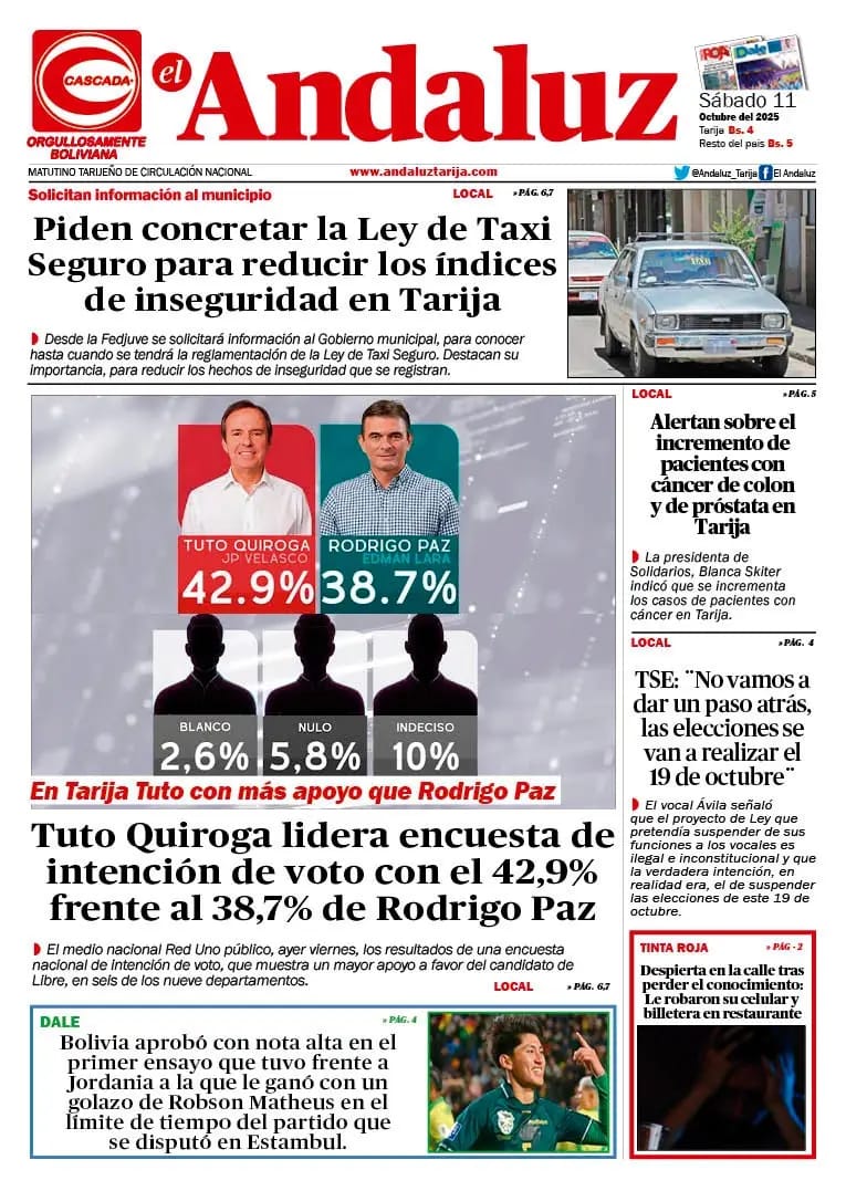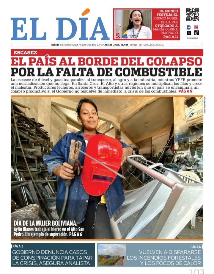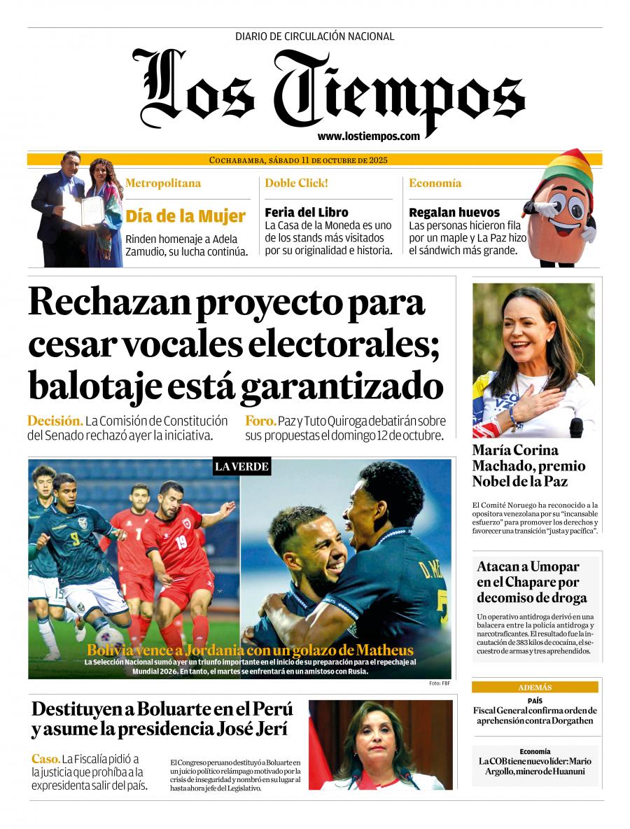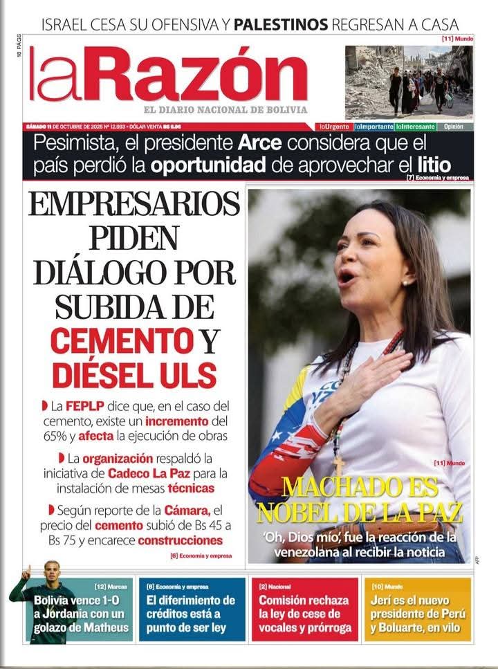 Portadas de los periódicos de Bolivia del sábado 11 de octubre del 2025
