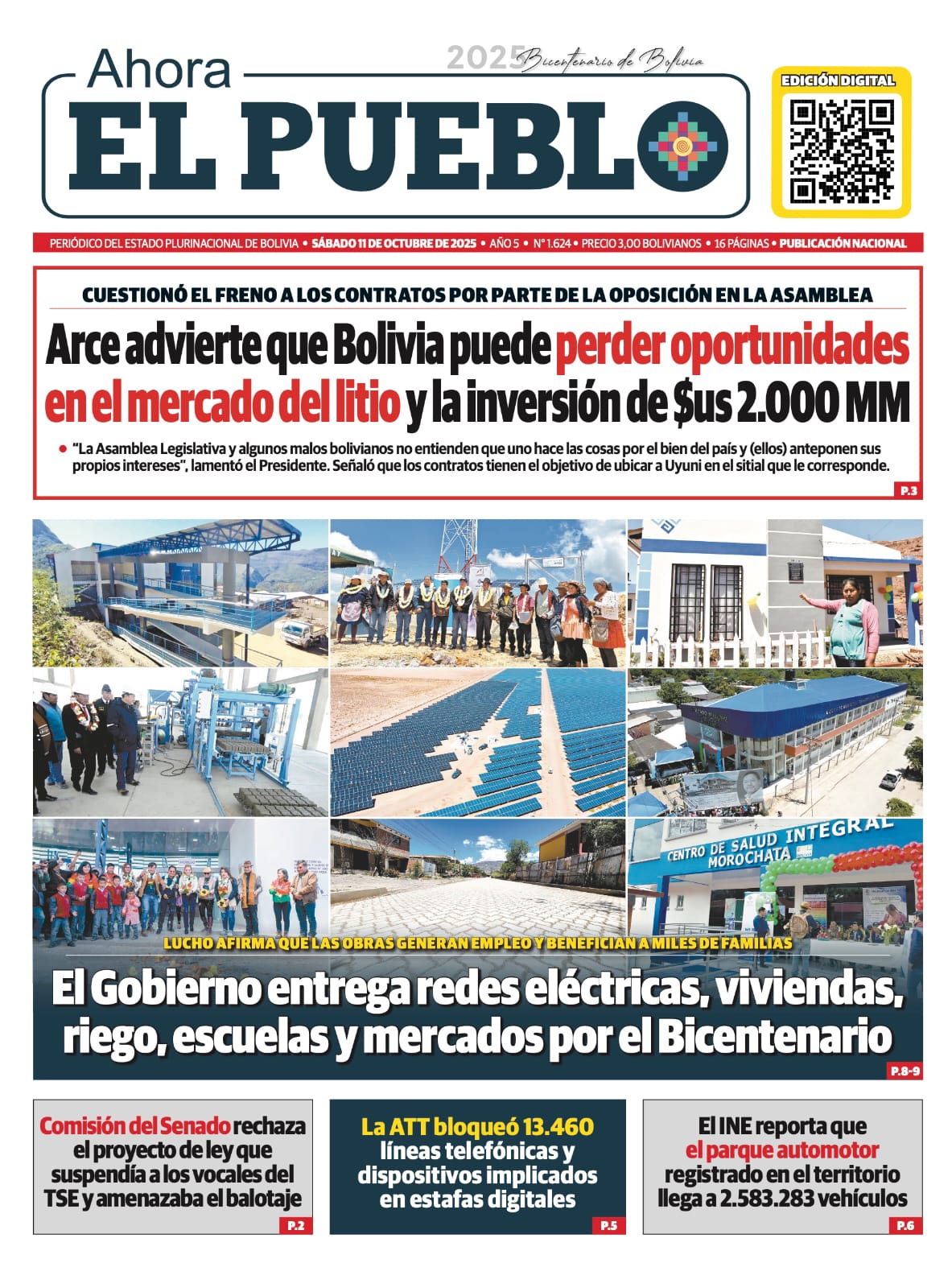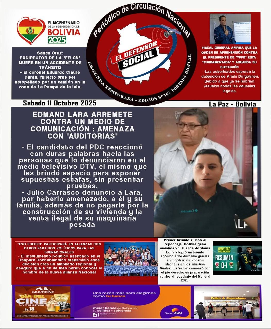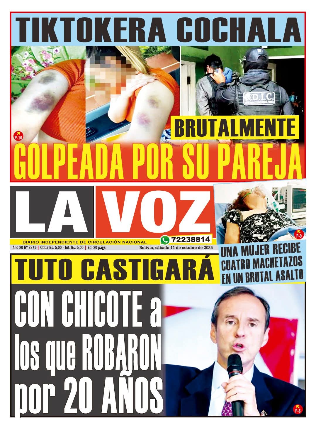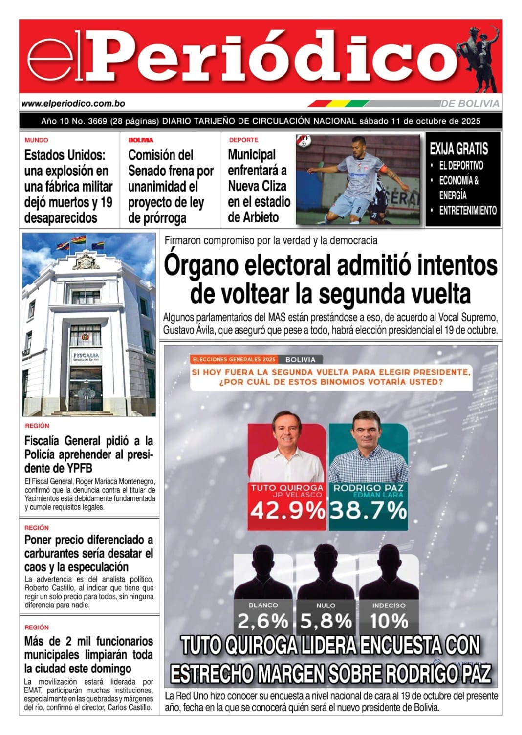 Portadas de los periódicos de Bolivia del sábado 11 de octubre del 2025