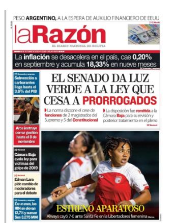 Fuente: El Deber, El Día, Zona Norte, La Palabra, La Razón, El Alteño, La Prensa, Ahora El Pueblo, La Estrella del Oriente, El Mundo, La Voz, Contraparte, Andaluz, El Potosí, Correo del Sur, El País, El Periódico, El Diario, Amitel Pres, Opinión, Caja Negra, Novavox.