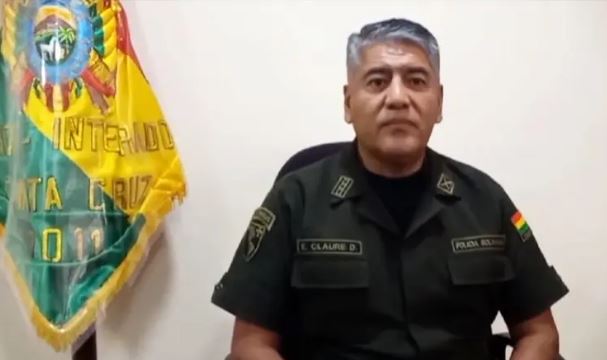 “Soy el coronel Aniceto Eduardo Claure Durán, mi último destino fue como comandante del Batallón de Seguridad Física y también tuve varios cargos acá en Santa Cruz en diferentes unidades especializadas”, señaló Claure tras asumir el cargo de comandante de la Policía de Montero.