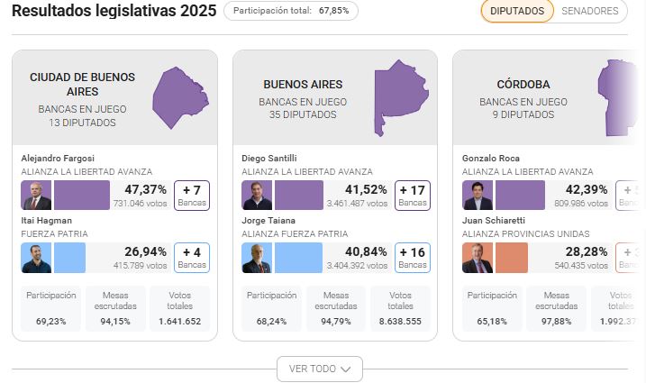 Los resultados de las elecciones legislativas nacionales 2025, distrito por distrito