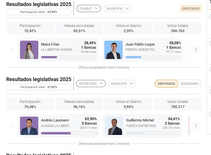 - Chubut: 2 diputados nacionales