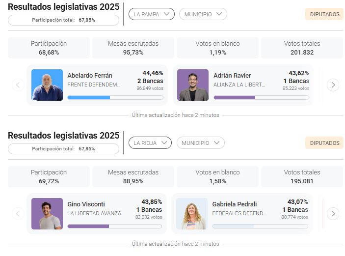 - La Rioja: 2 diputados nacionales