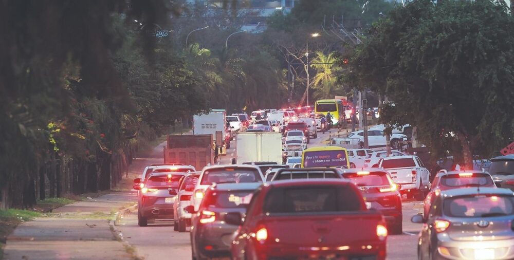 El martes, en el horario pico de la noche, le tomó media hora avanzar desde la avenida Cristo Redentor hasta la avenida La Salle, por los embotellamientos que se extienden hacia los carriles del cuarto anillo.