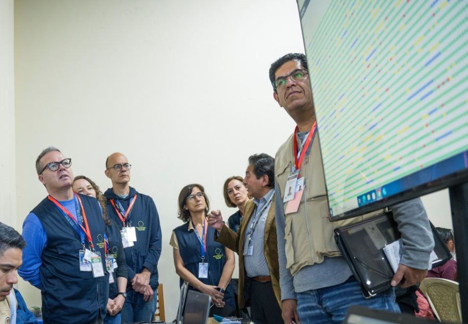 Los observadores de la UE en el simulacro del Sirepre en La Paz. Foto: MOE-UE