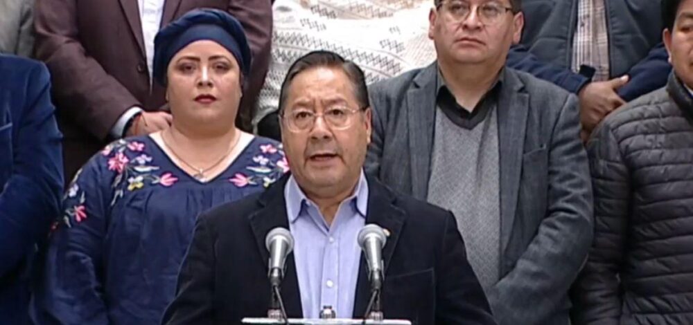 Junto a su gabinete de ministros, el presidente Luis Arce denunció este miércoles que en la Asamblea Legislativa Plurinacional (ALP) se encuentra en curso un plan que, a su juicio, constituye un “golpe a la democracia”, promovido por algunos diputados y senadores que buscan «favorecer sus propios intereses» y no los del pueblo boliviano, debido a que quieren aprobar un proyecto de ley que intenta suspender en sus funciones a los vocales del Tribunal Supremo Electoral (TSE). En ese sentido pidió al Órgano Electoral convocar a un encuentro a los cuatro poderes del Estado para garantizar el balotaje del domingo 19 de octubre. «En este momento quieren aprobar el proyecto de ley presentado por el senador Pedro Benjamín Vargas, quien no pertenece a nuestra bancada. Este proyecto de ley pretende suspender las funciones de los vocales electorales y prorrogar el mandato de las actuales autoridades electas, es decir, presidente, vicepresidente, diputados y senadores», sostuvo.