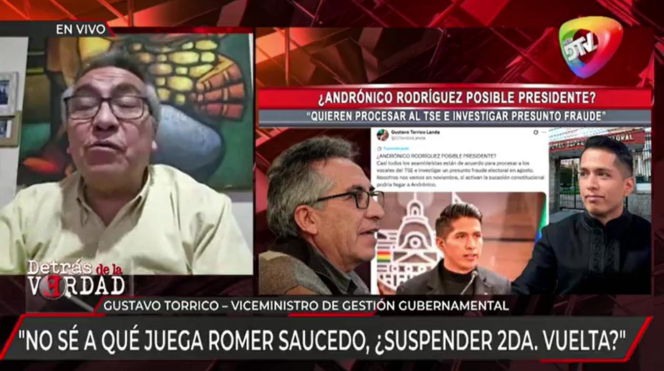 El viceministro Gustavo Torrico denuncia un complot articulado desde el Tribunal Supremo de Justicia (TSJ) para eliminar al TSE y paralizar el balotaje.