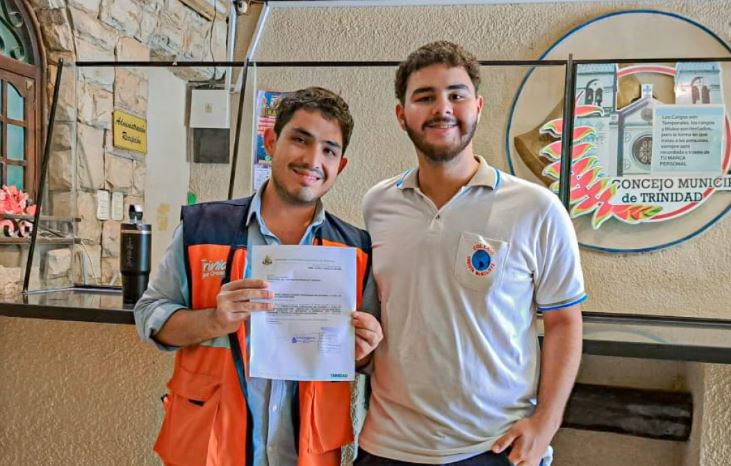 El director de Comunicación del Gobierno Autónomo Municipal de Trinidad, Sebastián Murillo, junto al estudiante Rolando Vaca, representante del colegio Christa McAuliffe y miembro de la delegación GDB, entregaron oficialmente la documentación en ventanilla única, marcando un nuevo paso hacia la aprobación de una normativa que ha despertado interés en todo el país.