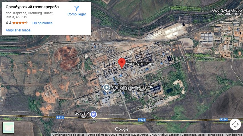 La planta de Oremburgo, operada por el gigante estatal del gas Gazprom, forma parte de un complejo de producción y procesamiento que es una de las instalaciones más grandes de su tipo en el mundo, con una capacidad anual de 45.000 millones de metros cúbicos. Maneja condensado de gas del campo Karachaganak de Kazakhstan, junto con los propios campos de petróleo y gas de Oremburgo.