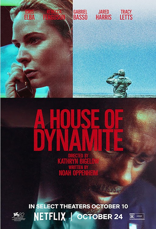 Dirige Una casa llena de dinamita Kathryn Bigelow. Esta cineasta me gustó con esa película de surfistas ladrones “cool” que se llama Punto de quiebra (1991) y me terminó de enamorar con Días Extraños (1995), distopia sobre la realidad virtual que está a otro nivel. El reconocimiento mundial le llegó con En tierra hostil (The Hurt Locker 2008), cinta que le valió el Óscar a Mejor Película y el Óscar a Mejor dirección (Siendo la primera vez que una mujer obtuvo el premio en esta categoría). Sin alcanzar el nivel de En tierra hostil, Una casa llena de dinamita es una de las sorpresas agradables de este 2025 que casi termina.