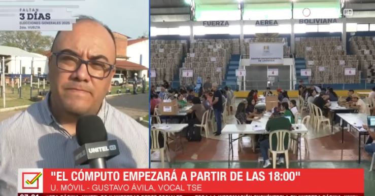 Bolivia está en la recta final para la segunda vuelta de las elecciones presidenciales y el Tribunal Supremo Electoral (TSE) ya última los detalles de logística. En esta línea, el vocal de la institución, Gustavo Ávila, señaló que ya se realizó un simulacro del Sistema de Resultados Preliminares (Sirepre) por lo que se proyecta que los datos se informarán a las 20:00 del mismo 19 de octubre, día en el que la población asistirá a las urnas.