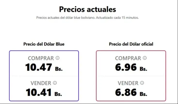 Por otro lado, según datos obtenidos por el sitio https://bolivianblue.net/#google_vignette, el dólar blue boliviano, que se actualiza cada 15 minutos, cotiza este martes una variación, ya que a la compra se registra en 10.47 (BOB) y 10.41 (BOB) para la venta.