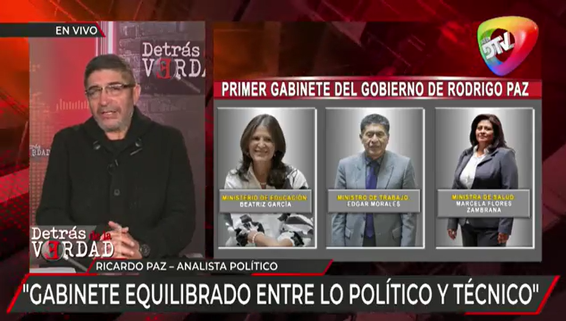 El analista Ricardo Paz destacó la composición del nuevo gabinete y advirtió que el Gobierno debe actuar con urgencia para estabilizar la economía, reconstruir la institucionalidad y marcar distancia del ciclo del MAS.