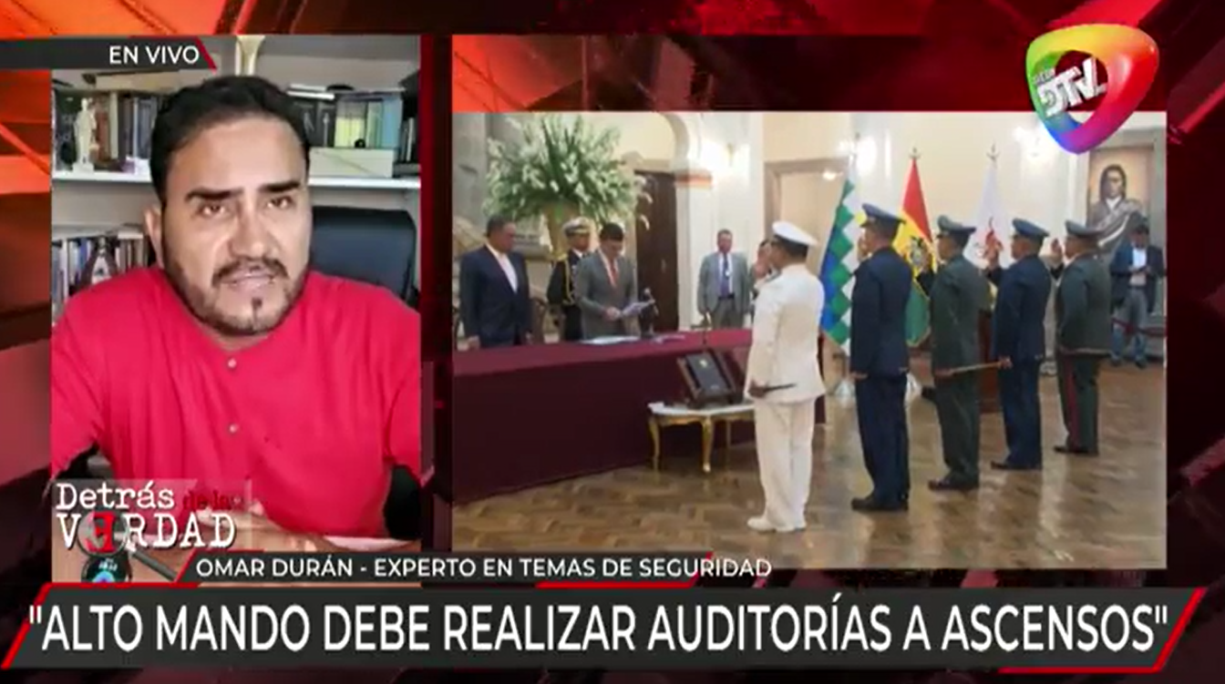Para el experto en seguridad Omar Durán, la principal tarea de inicio del nuevo Alto Mando Militar debe ser una auditoría profunda a los procesos de ascenso aplicados en el período del Movimiento al Socialismo (MAS), en los que –según afirma– se marginó a oficiales con méritos profesionales. “Debe hacerse una auditoría muy especial: por qué no ascendieron buenos oficiales en tiempos del MAS”, afirmó, al señalar que un examen técnico y retroactivo es indispensable para restituir la confianza en la carrera militar.