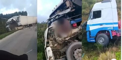 El conductor de un camión perdió la vida tras quedar atrapado en la cabina luego de una presunta colisión con otro vehículo de carga. La carretera sigue bloqueada y se investigan las causas del accidente.