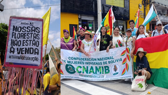Con la consigna “Nuestros bosques no están en venta”, organizaciones indígenas, campesinas y colectivos de la sociedad civil de toda América Latina se movilizaron este sábado en Belém do Pará, sede de la COP30, para expresar su rechazo al Mercado de Carbono y al Fondo de Bosques Tropicales para Siempre (TFFF), impulsados por el gobierno brasileño.