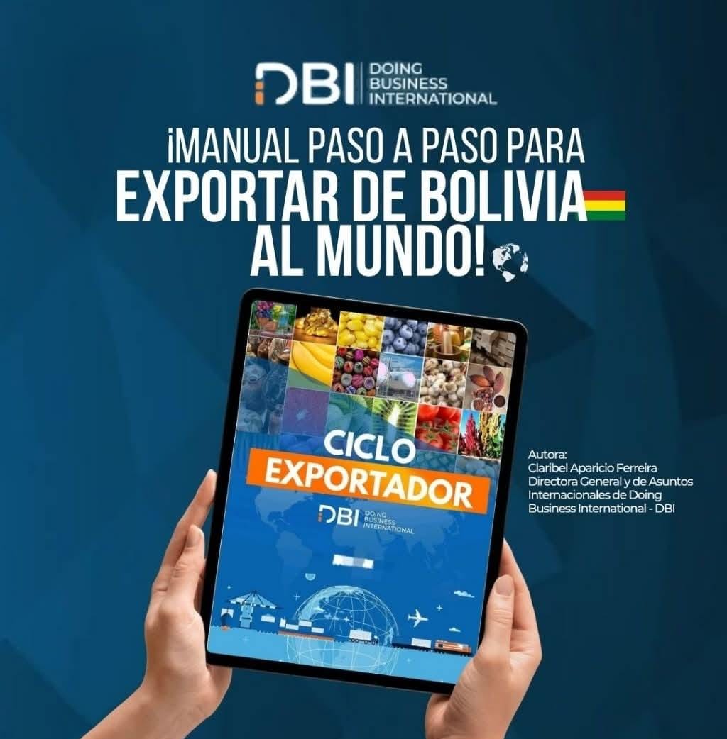 Doing Business International – DBI, ante la gran cantidad de consultas, de empresarios y emprendedores, de como exportar, pasos y procedimientos, como me preparo para Exportar productos y servicios a mercados internacionales, DBI pone a tu alcance el documento que es una guía o manual para exportar productos y servicios a diferentes mercados internacionales, un libro que se ha trabajado los últimos meses, en el que transmitimos nuestro conocimiento y 20 años de experiencia en exportaciones, el «CICLO EXPORTADOR», es una guía que te llevará paso a paso a Exportar de Bolivia al Mundo, expresa la autora del libro, Claribel Aparicio, Directora general y de Asuntos Internacionales de DBI.