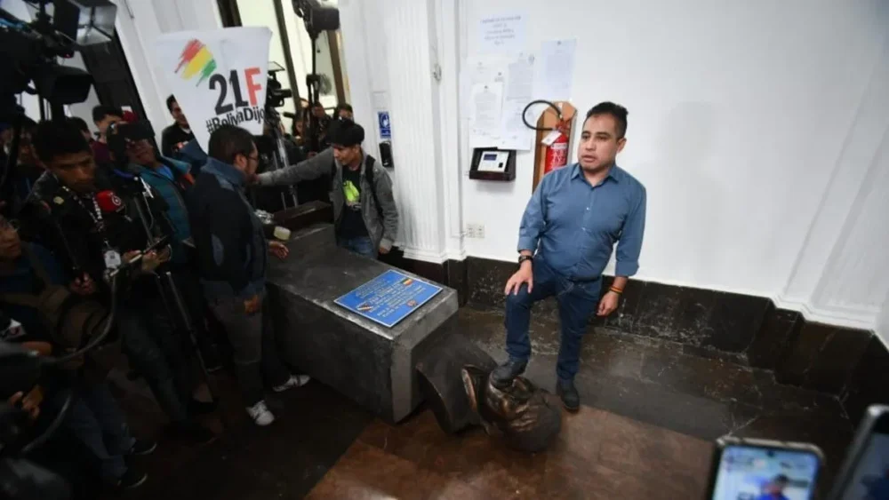 «Personalmente voy a pedir que se retire el busto de Evo Morales, porque entendemos que es un expresidente y no vemos los bustos de todos los expresidentes aquí; por un principio de igualdad, se debe retirar», afirmó Rojas, legislador electo por el PDC.