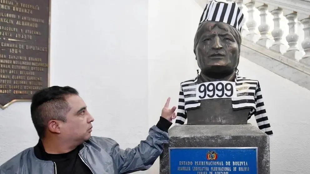 Más adelante, el 13 de agosto de 2025, el exdiputado Alberto Astorga presentó el busto de Evo Morales vistiendo un uniforme característico de un preso.