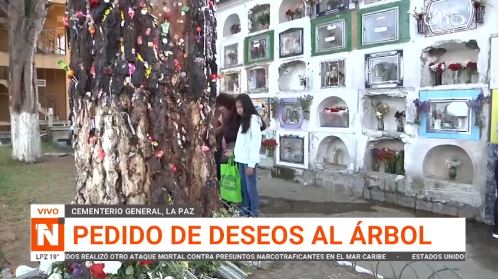En medio del silencio solemne y las flores que adornan las tumbas del Cementerio General de La Paz, hay un rincón donde la fe, la curiosidad y la esperanza se entrelazan: el llamado árbol de los deseos.