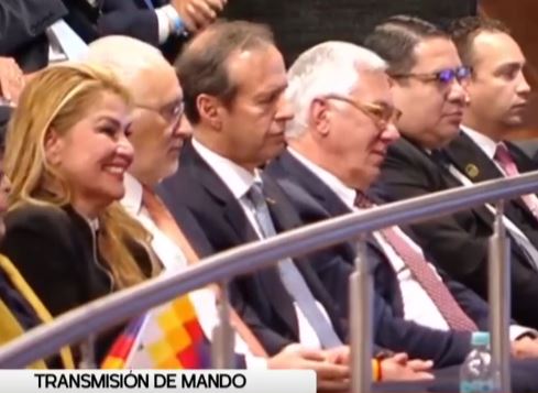 El vicepresidente Lara saluda la presencia de los expresidentes Áñez, Mesa, Tuto, Veltze y Paz en la transmisión de mando