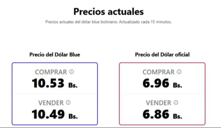 Por otro lado, según datos obtenidos por el sitio https://bolivianblue.net/#google_vignette, el dólar blue boliviano que se actualiza cada 15 minutos, cotiza este viernes una variación, ya que a la compra se registra en 10.53 (BOB), y 10.49 (BOB), para la venta.