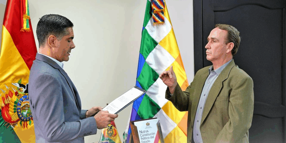 Erick Bruckner Mendez juró como director general ejecutivo este jueves, en un acto encabezado por el ministro de Desarrollo Productivo, Rural y Agua.